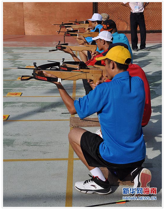 海南省第五届少数民族传统体育运动会比赛项目之一——射弩(新华网 图)