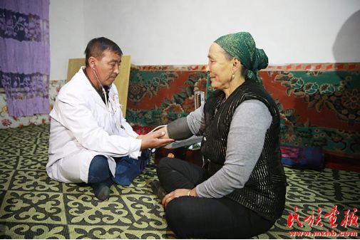 居马泰·俄白克为脑梗病人做检查