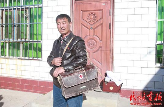 一只老式的皮药箱、一匹马、一个装满药的马褡子、一件绑在马鞍后的皮大衣,见证了居马泰·俄白克的牧区医生生活,他那风尘仆仆的身影在包扎墩牧区已经成为牧民们眼中最美的身影。