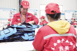 甘肃省临夏回族自治州和政县依托东西部协作机制,引进企业,以扶贫车间模式带动群众就近就业增收。 新华社发