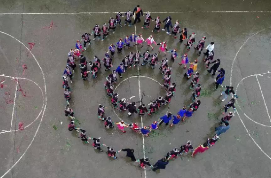 小朋友在表演民族歌舞